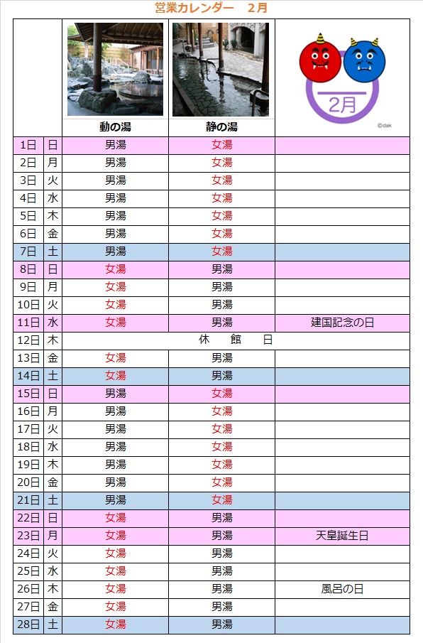 温泉カレンダー
